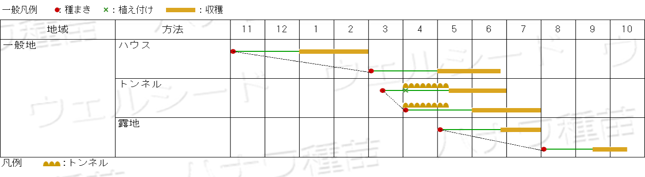 ●草勢旺盛で栽培容易な多収種。直売所出荷や家庭菜園にも特におすすめ。