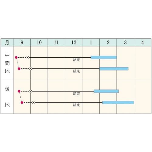 ●極晩抽性で耐寒・低温肥大性にすぐれ、2〜3月に収穫できる。