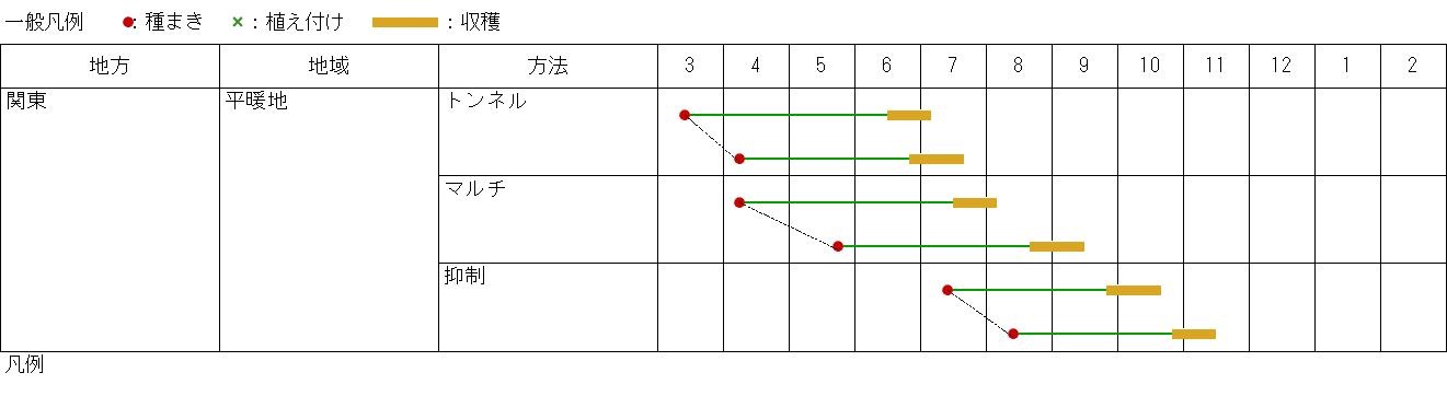 初夏〜盛夏まき、秋収穫の抑制栽培も可能。