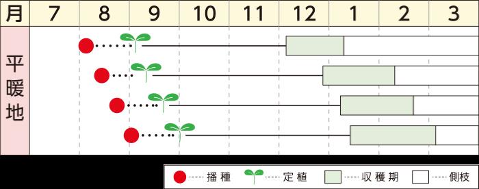 ●7月下旬〜8月中旬まきで、11月下旬〜3月どり。
